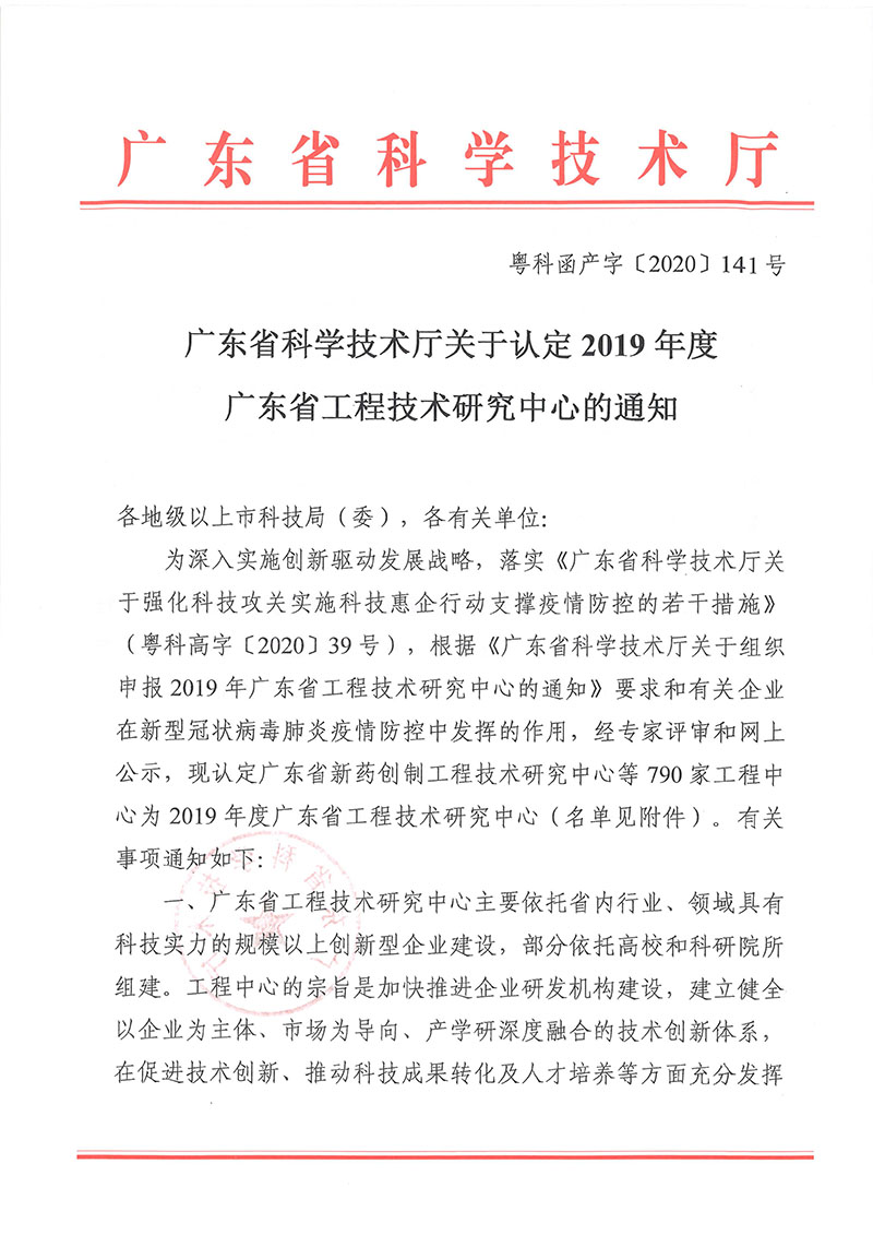 搜狐体育机械制造有限公司于2019年认定为广东省工程技术研究中心